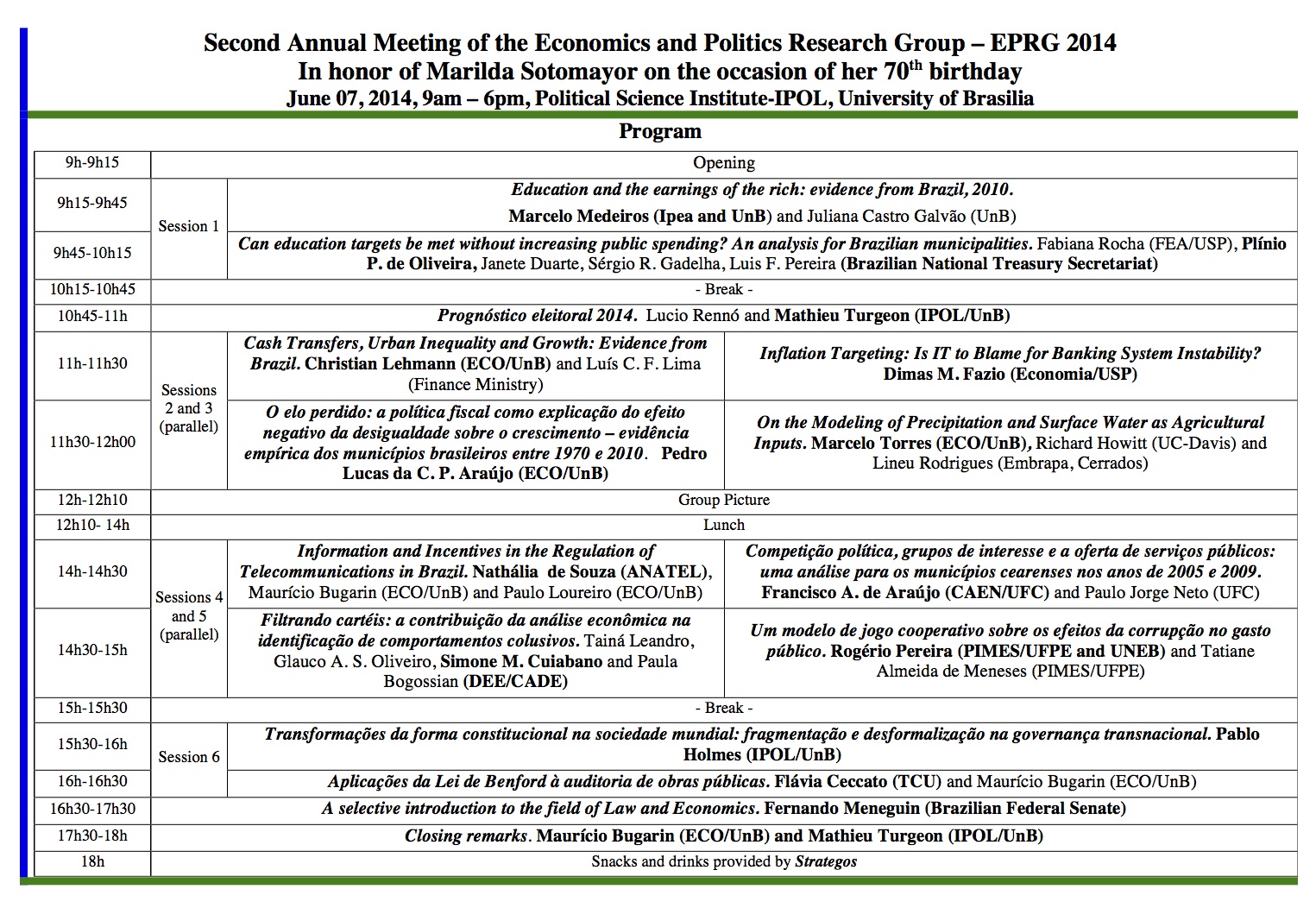 We are pleased to invite you to the Second Annual Meeting of the Economics and Politics Research Group, June 7, 2014, IPOL/UnB, 9am to 6pm.