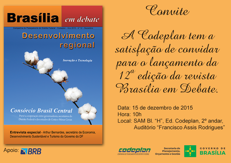 Convite para lançamento da 12a. edição da revista Brasília em Debate