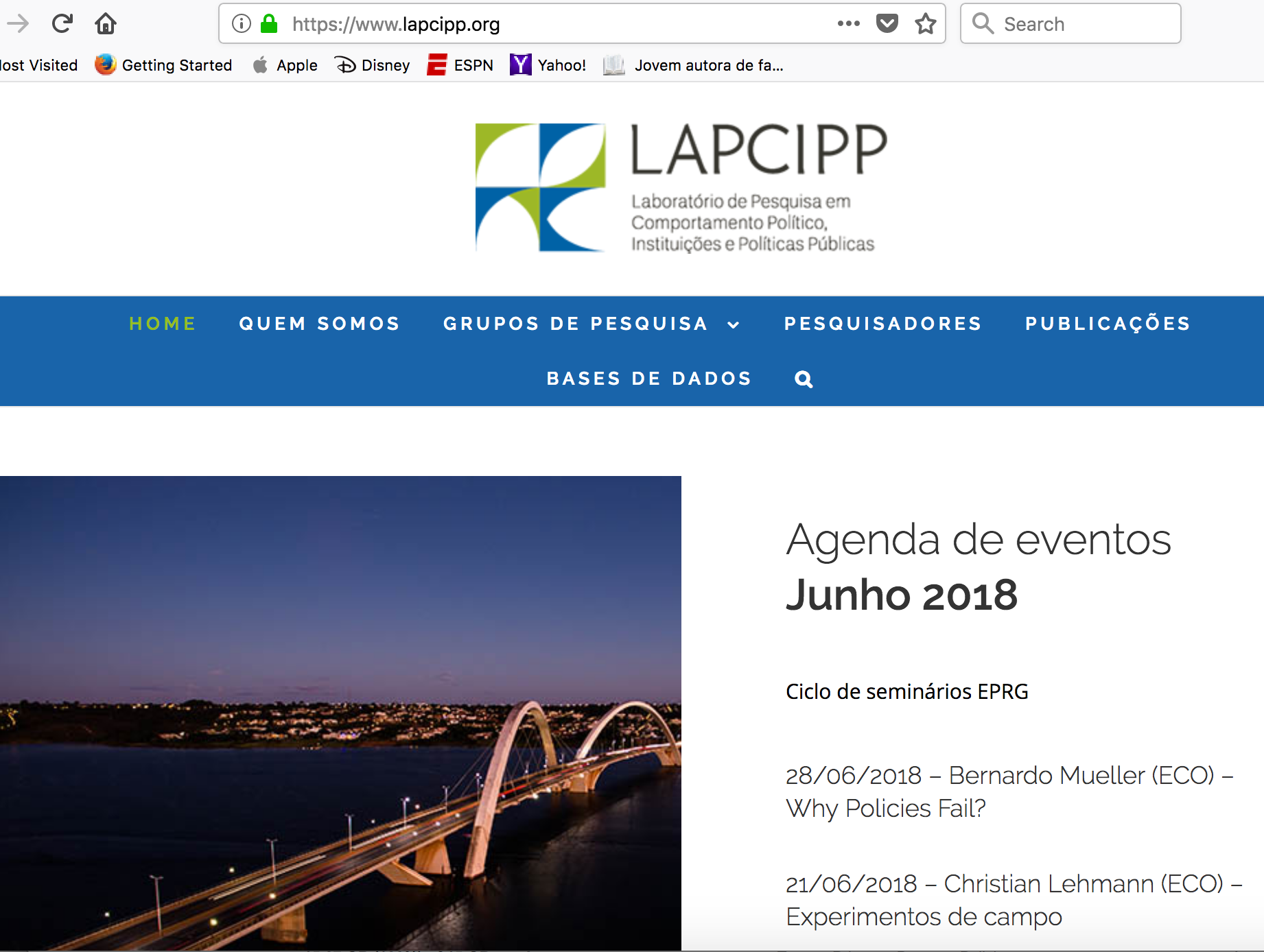 Acaba de ser lançado o website do Laboratório de Pesquisa em Comportamento, Instituições e Políticas Públicas da UNB. O laboratório é formado por pesquisadores do Programa de Pós-Graduação em Ciência Política da UNB.
