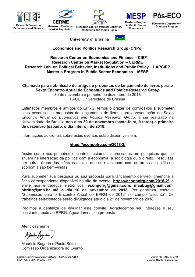 Chamada para submissão para o Sexto Encontro Anual do EPRG