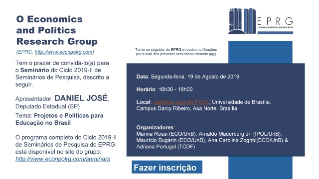 Seminário extraordinário: Daniel José, Assembleia Legislativa SP, Segunda 19/8/2019, 16:30 FACE/UnB