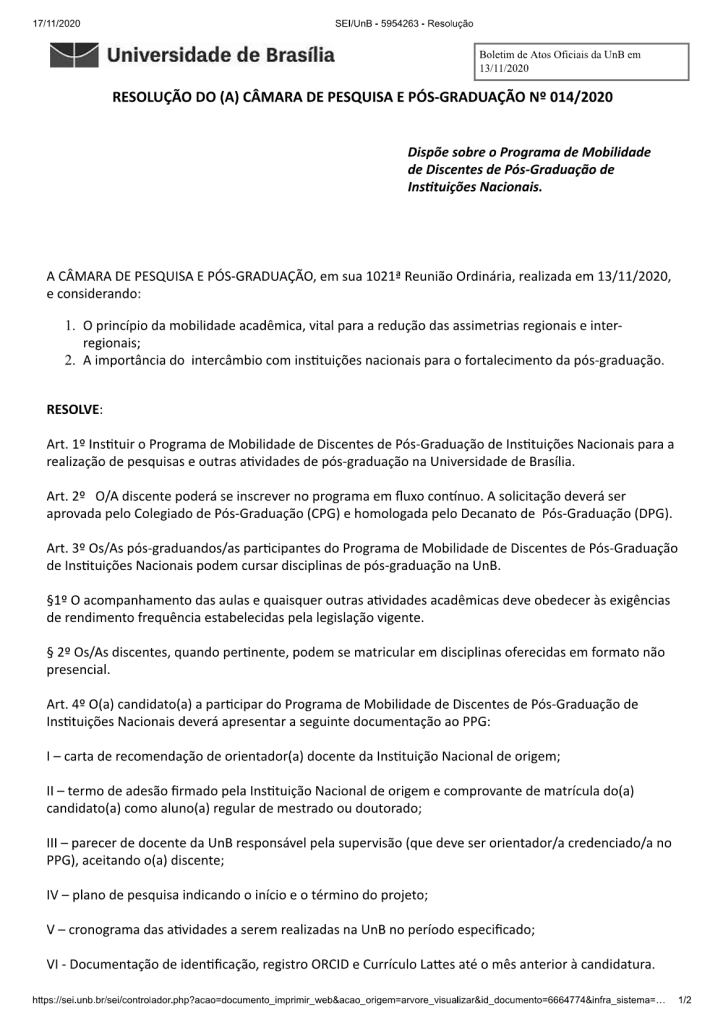 Oportunidade: Intercâmbio de pós-graduação na UnB