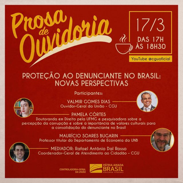 Webinar: HOJE 17/3/21: “Proteção ao Denunciante no Brasil: novas perspectivas”