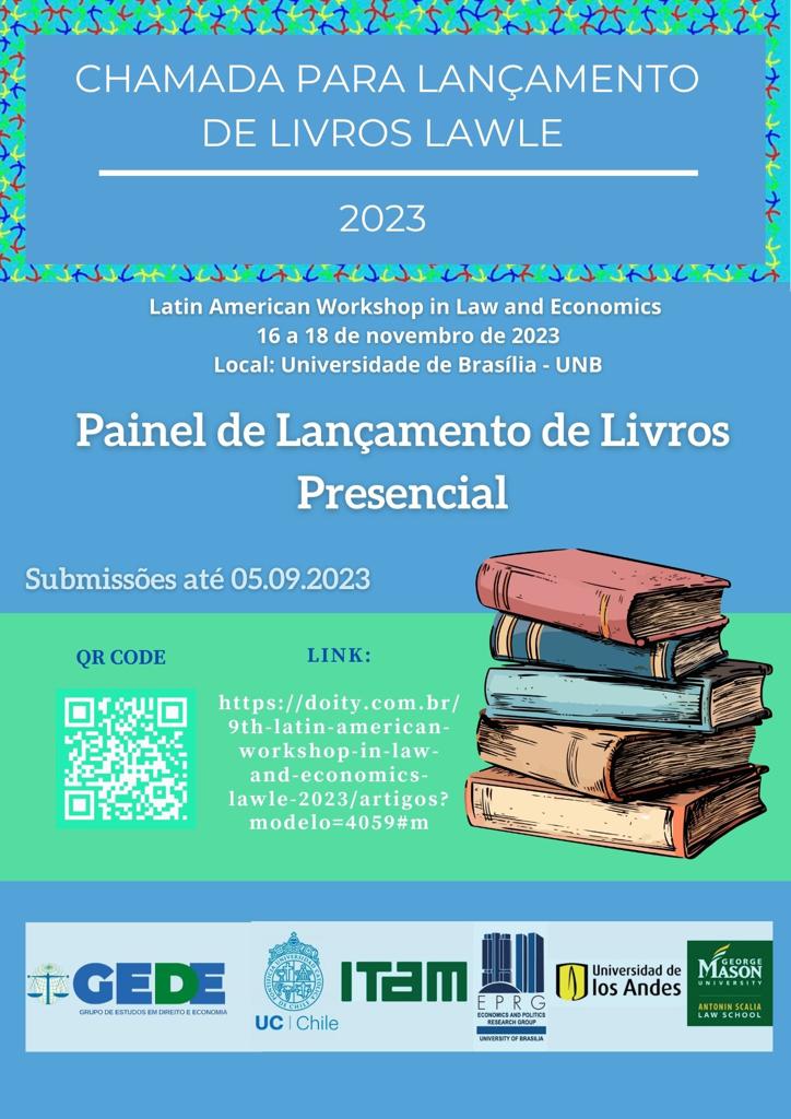 Estão abertas até o dia 5 de setembro as submissões de artigos para serem apresentados no Ninth Latin American Workshop in Law and Economics, o LAWLE 2023. Também haverá espaço para lançamentos acadêmicos de livros no evento, que será realizado na Universidade de Brasília de 16 a 18 de novembro de 2023.