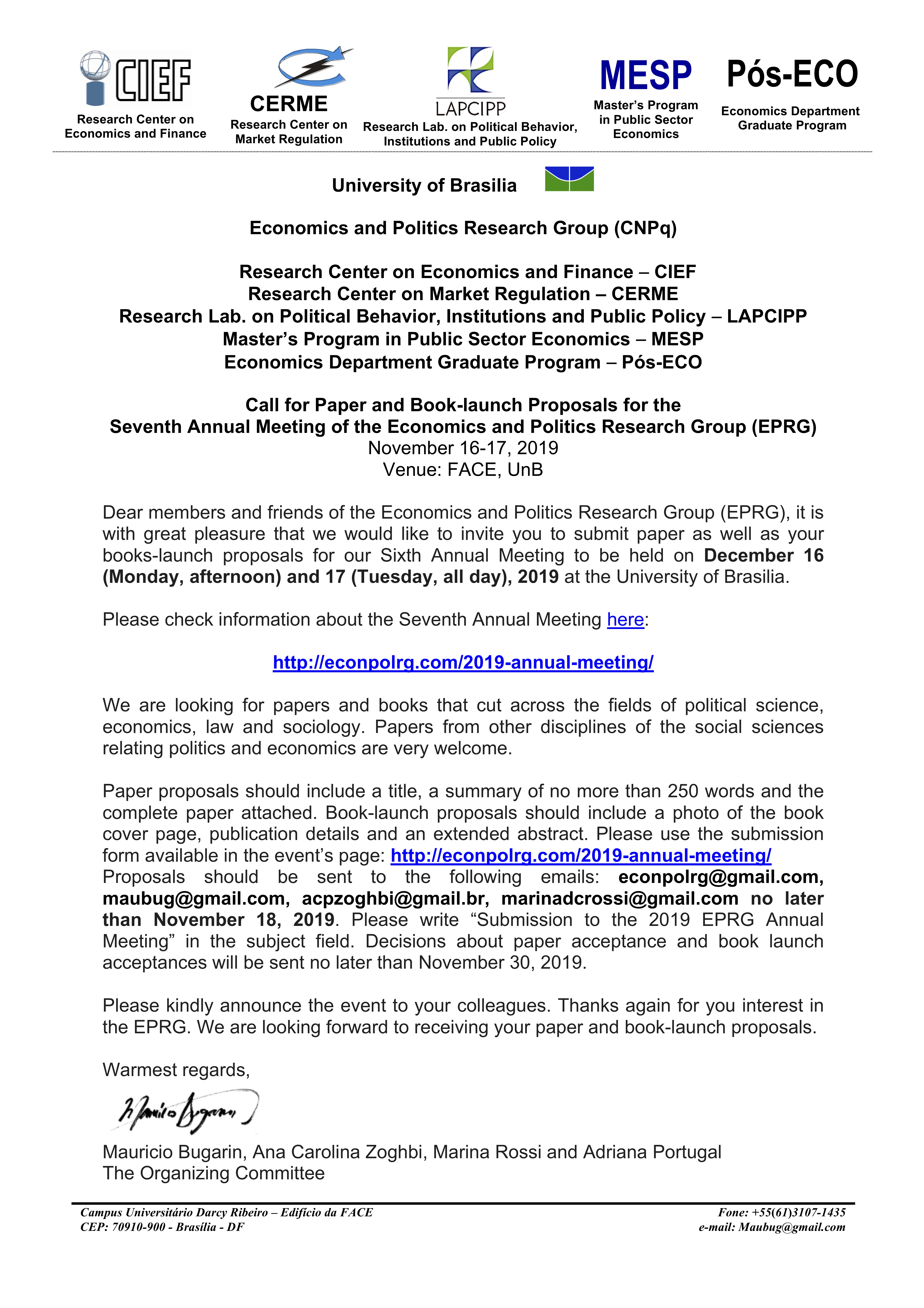 Call for papers and book launch submission: 7th Annual Meeting of the EPRG